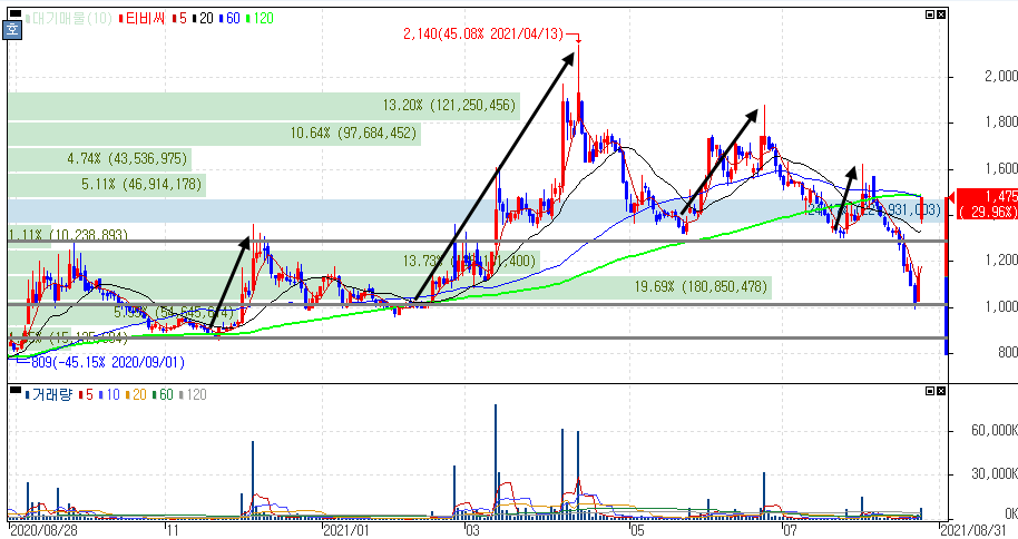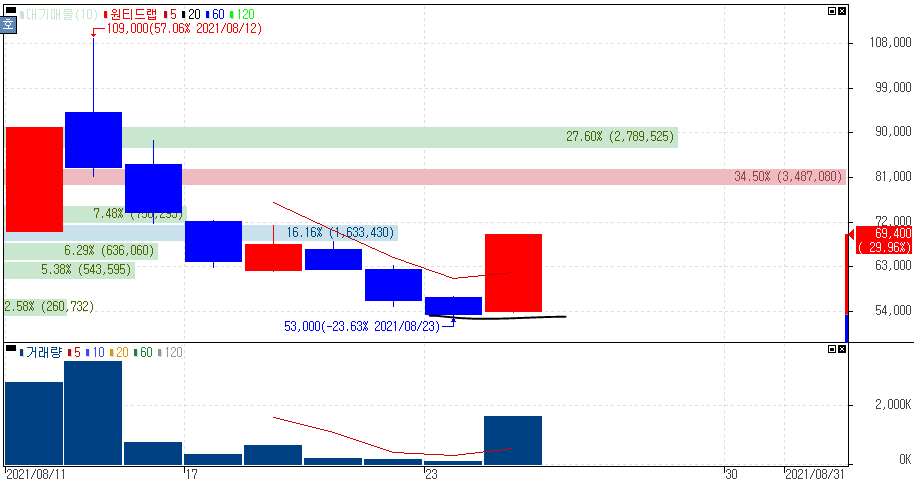 2021년 8월 24일 오늘의 상한가 종목 및 이유 :: 원티드랩 티비씨 아즈텍WB 휴맥스홀딩스 주가 외