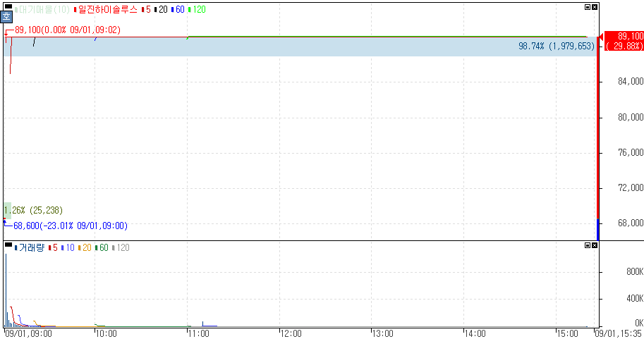 신규상장 첫날 상한가를 기록한 일진하이솔루스 주가 입니다.