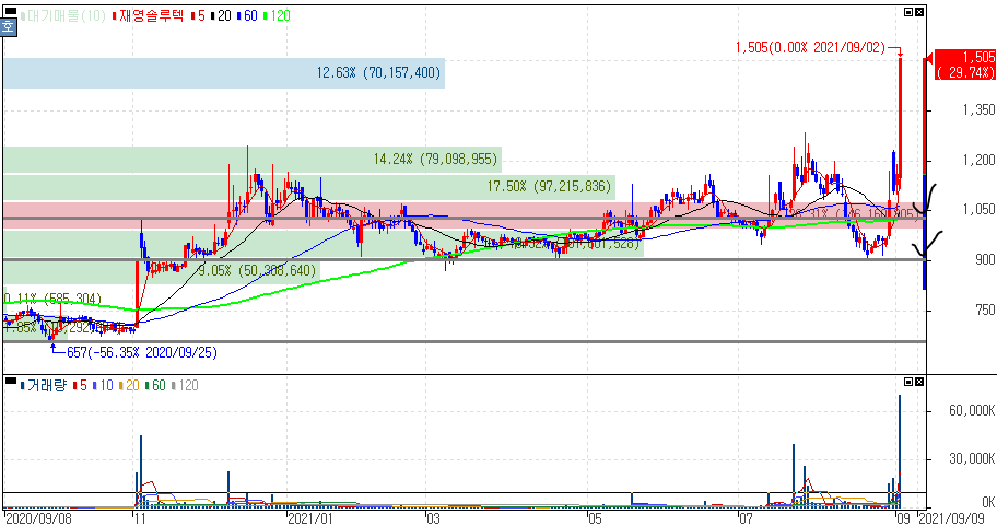 이번 개인적인 업무에서도 활용한 재영솔루텍은 워낙 과거 대북주 성향이 강한 종목이라 한반도 정세에 신경쓰면서 보게 되는 종목이기도 합니다. 하지만 크게 진전없는 한반도 정세에 기업이 가지고 있는 재료들은 결코 무시하면 안된다는 의미로도 볼 수 있습니다.