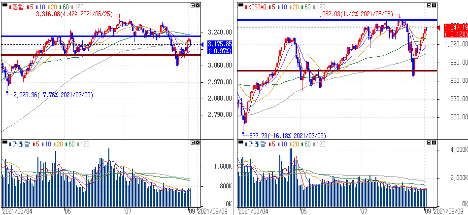 금일 코스피 지수는 -0.97% 하락한 3,175.85에 마감하였고, 코스닥 지수는 +0.12% 상승한 1,047.19에 마감하였습니다. 어제와 달리 외국인과 기관의 매도세에 다소 밀리는 모습을 보였는데요. 美 고용동향보고서 경계와 물가상승 우려 분위기가 조성됐습니다.