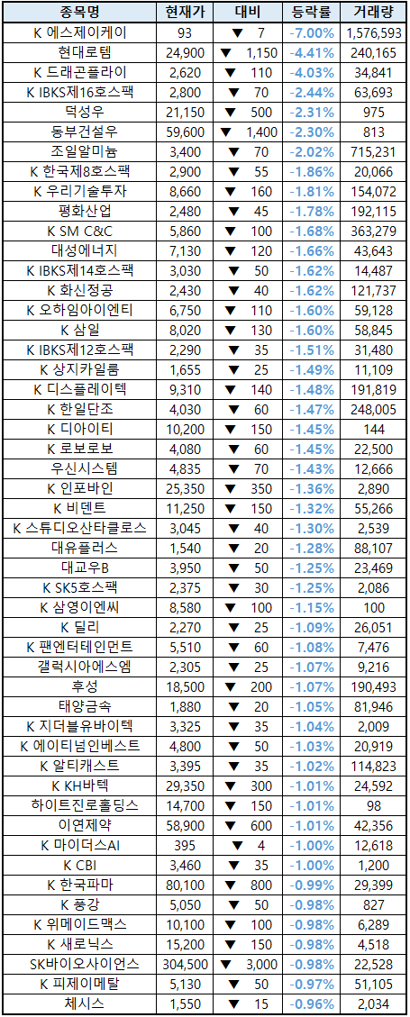 (종목명 앞에 'K'는 코스닥 종목을 의미합니다.)