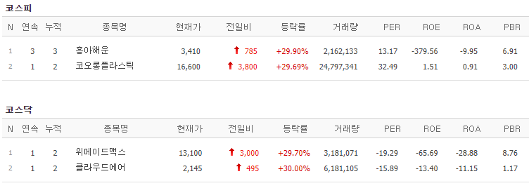 코오롱플라스틱 주가 :: 2021년 9월 17일 오늘의 상한가 종목
