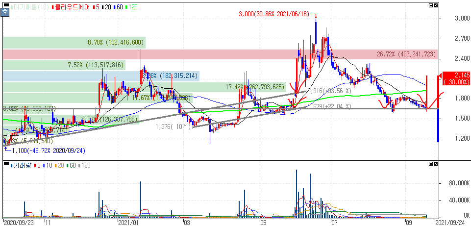 클라우드에어 주가 :: 2021년 9월 17일 오늘의 상한가 종목