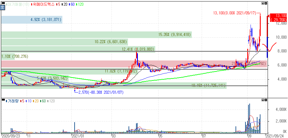 위메이드맥스 주가 :: 2021년 9월 17일 오늘의 상한가 종목