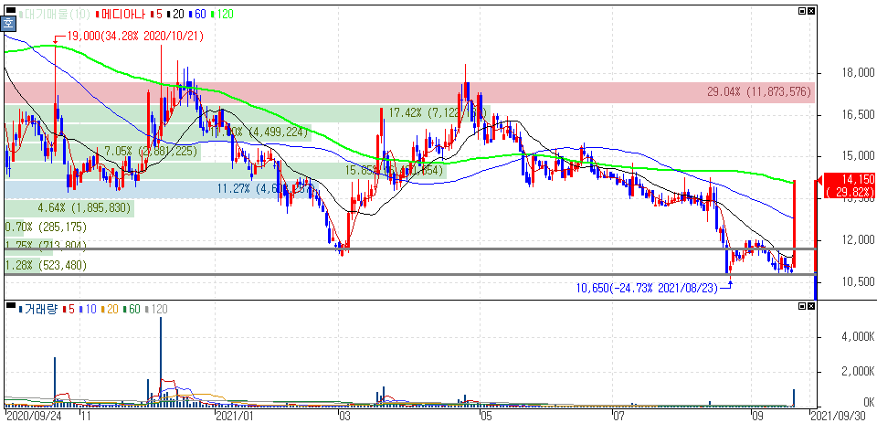 2021년 9월 23일 오늘의 상한가 종목 :: 팜젠사이언스 버킷스튜디오 메디아나 주가 외