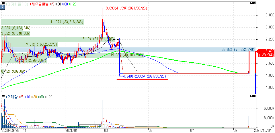 한국거래소는 세우글로벌의 개선계획 이행여부 등을 심의한 결과 상장 유지를 결정했는데요.지난 3월 2020사업연도 감사인의 감사보고서상 감사의견 의견거절로 매매거래가 정지된 바 있는 세우글로벌은 거래재 첫날 상한가를 기록했습니다.