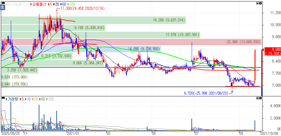 물론 대북주의 변동성은 잘 아실거라 봅니다. 우선 전반적인 대북주 종목들의 흐름을 잘 파악해두시고, 10월 북한 기념일 앞두고 현재 분위기가 계속 이어갈 수 있을지에 대해서도 생각하면서 주시할 수 있습니다.