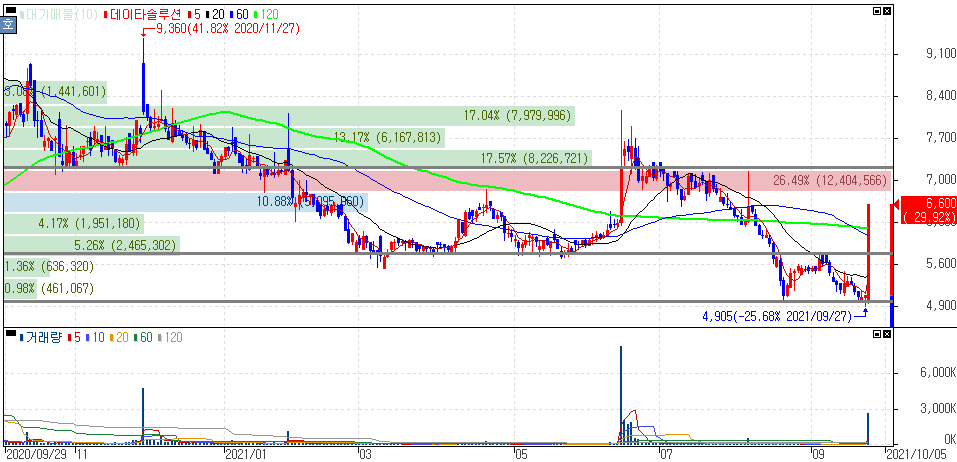 '데이터 기본계획 수립 의무화법' 국회 본회의 통과 소식에 상한가를 기록한 데이타솔루션 입니다.