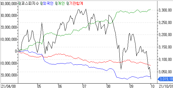 외국인 -3,000억 / 기관 -4,873억
