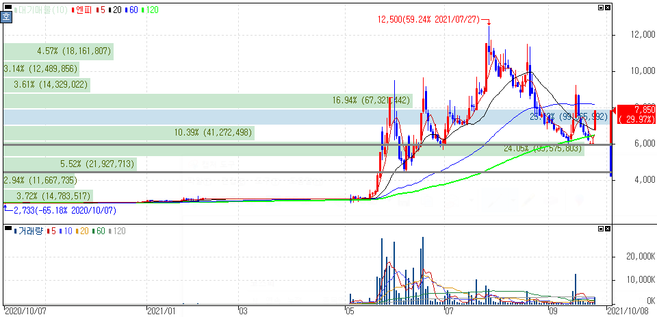 지난 7월 고점 이후 약세를 보인 '엔피'인데요. 기본적으로 스팩상장 전후로 주가 변동성이 확연히 보였다는 점과 주가 등락률이 가파른 떄에는 매매에 주의해야 한다는 점은 필수라는 것을 반드시 기억해야 합니다.