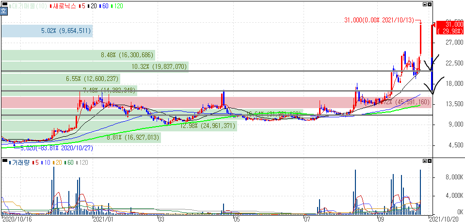 이번 상한가가 나온 기술적인 측면을 보기보다는 고점으로부터 물리지 않기 위한 복습이 매우 중요하다는 것을 명심하시면서 종목 공부를 하시길 바랍니다. 대부분의 개인투자자들은 수익만 보려고 하지 손실을 피하려고 하지 않기 때문입니다.