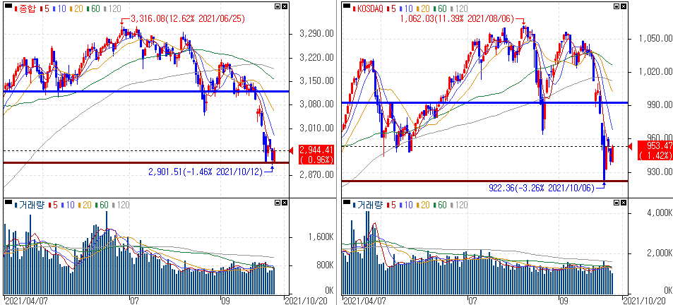 대부분의 개인투자자들은 상승장에서의 여운과 영향보다는 하락장에서의 여운과 영향이 더 오래가고 받아들이는 영향이 더 큽니다. 국내 지수 차트를 보시면 지난 8월부터 상승보다는 하락이 더 많아 현재 힘들 투자자분들이 더 많죠.