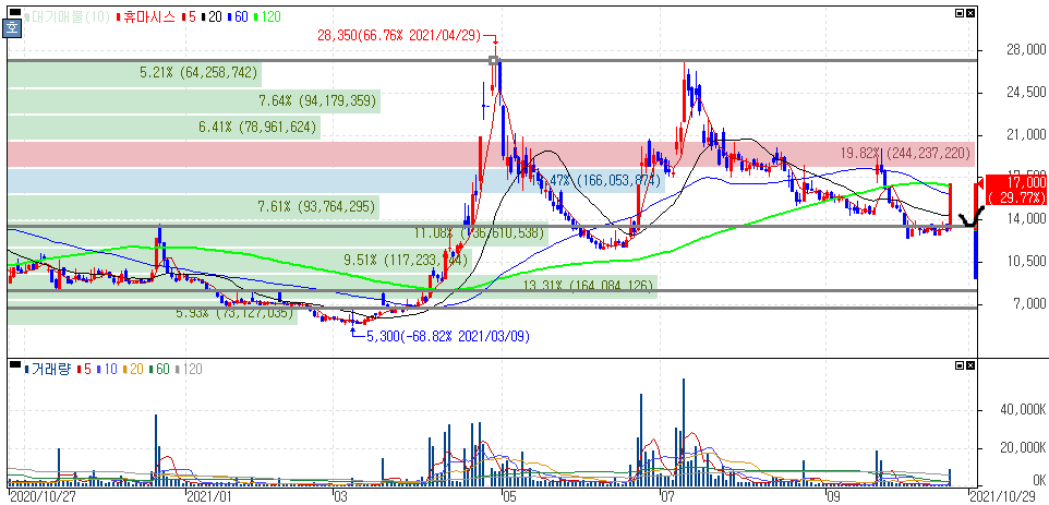 2021년 10월 22일 오늘의 상한가 종목 및 이유 :: 휴마시스 에이치앤비디자인 주가 외