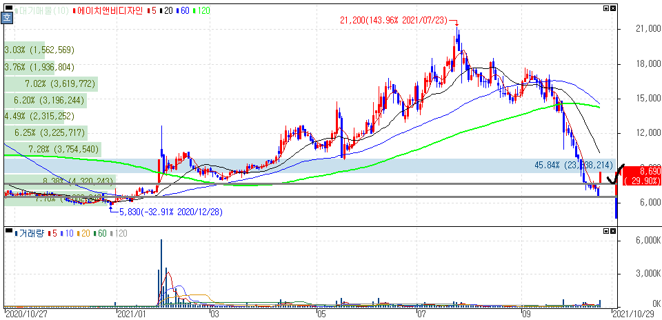 2021년 10월 22일 오늘의 상한가 종목 및 이유 :: 휴마시스 에이치앤비디자인 주가 외