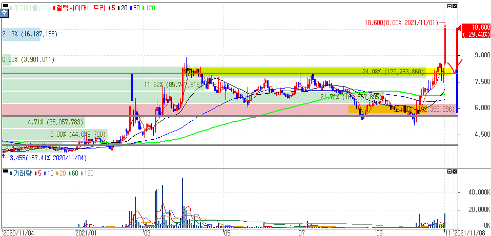 2021년 11월 01일 오늘의 상한가 종목 및 이유 :: 갤럭시아에스엠 갤럭시아머니트리 엠게임 주가 외