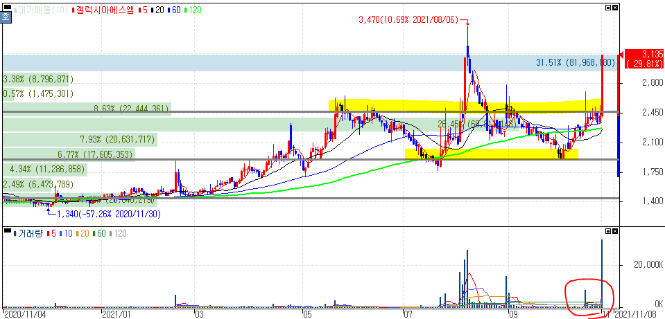 2021년 11월 01일 오늘의 상한가 종목 및 이유 :: 갤럭시아에스엠 갤럭시아머니트리 엠게임 주가 외