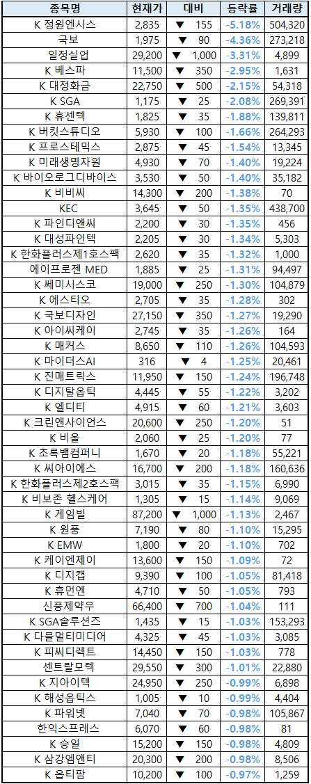 (종목명 앞에 'K'는 코스닥 종목을 의미합니다.)