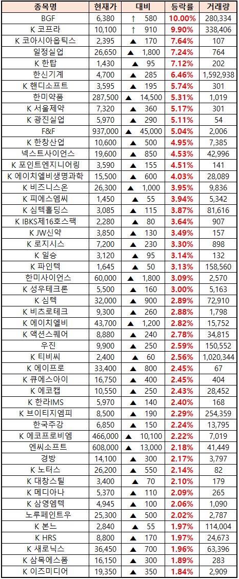BGF 주가 +10.00%