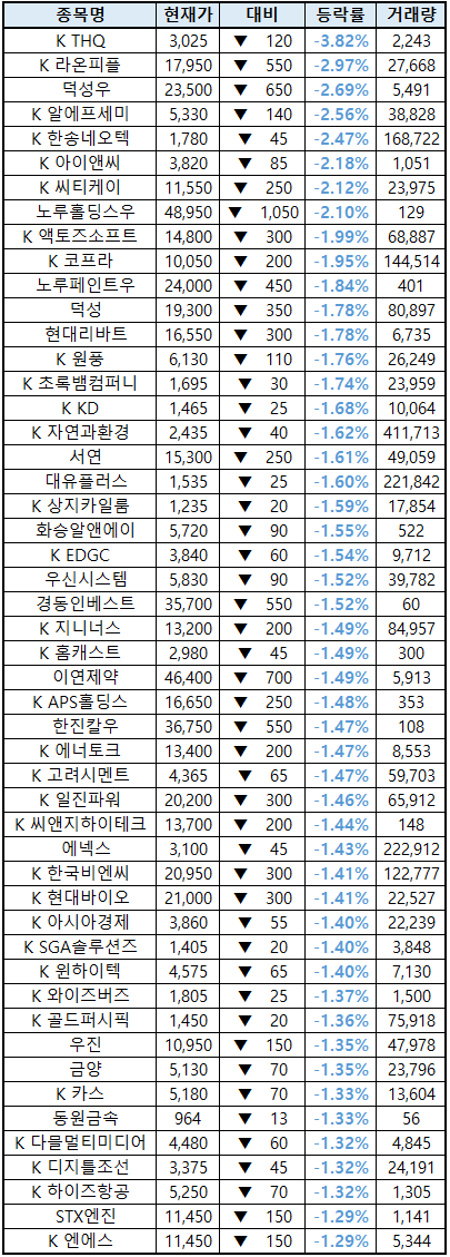 (종목명 앞에 'K'는 코스닥 종목을 의미합니다.)