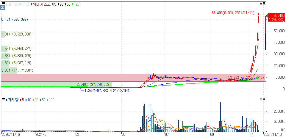 쎄미시스코 주가 :: 2021년 11월 11일 오늘의 상한가 종목