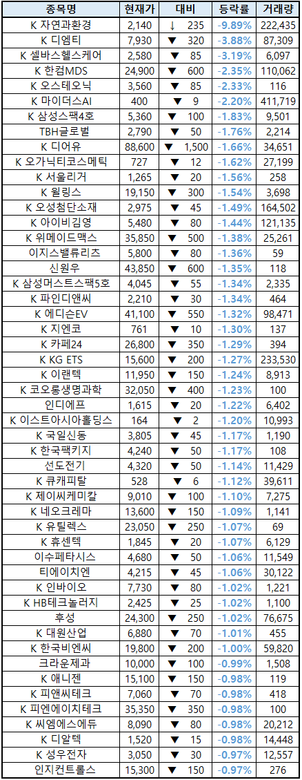 (종목명 앞에 'K'는 코스닥 종목을 의미합니다.)