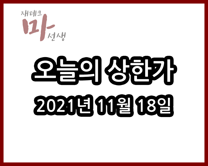 2021년 11월 18일 :: 오늘의 상한가 종목 및 이유 :: 비덴트 큐캐피탈 비투엔 원풍물산 코이즈 주가 외
