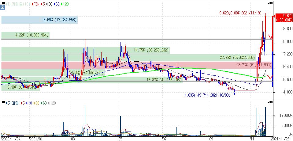 FSN은 아시는 분들 계시겠지만 상호변경 전 '퓨쳐스트림네트웍스' 였습니다. 최근 상호변경과 액면병합을 하면서 거래재개 이후 급격한 주가 변동성을 보이고 있습니다. 보통 이처럼 나타나는 경우가 많은데 NFT까지 겹치면서 급격한 상승을 보여주고 있습니다.