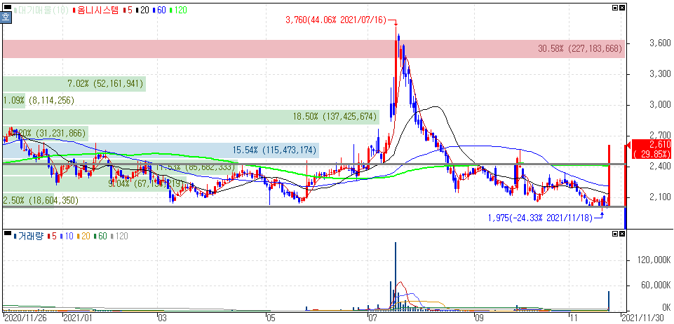 2021년 11월 23일 오늘의 상한가 종목 및 이유 :: 케이카 옴니시스템 주가