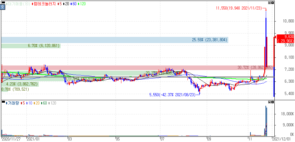 램테크놀러지 주가 :: 2021년 11월 24일 오늘의 상한가종목