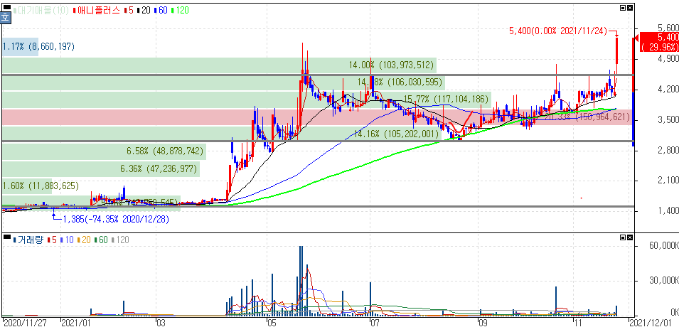 2021년 11월 24일 오늘의 상한가 종목 및 이유 :: 아이티아이즈 애니플러스 주가외