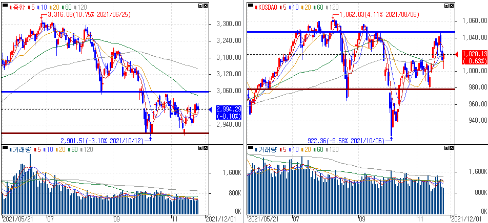 2021년 11월 24일 :: 코스피 코스닥 지수