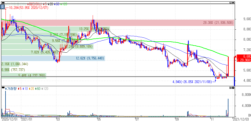 2021년 11월 26일 오늘의 상한가 종목 및 이유 :: 멕아이씨에스 메디아나 주가 외