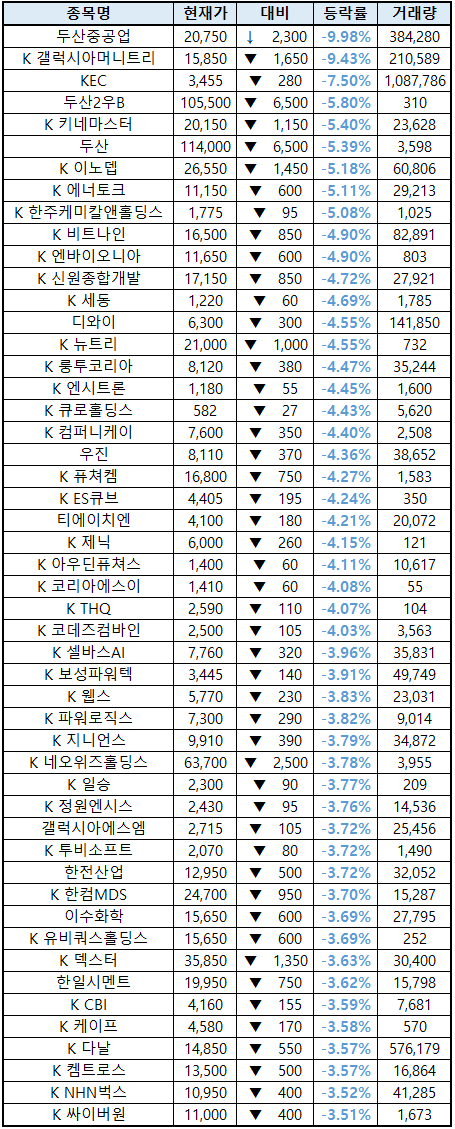 (종목명 앞에 'K'는 코스닥 종목을 의미합니다.)