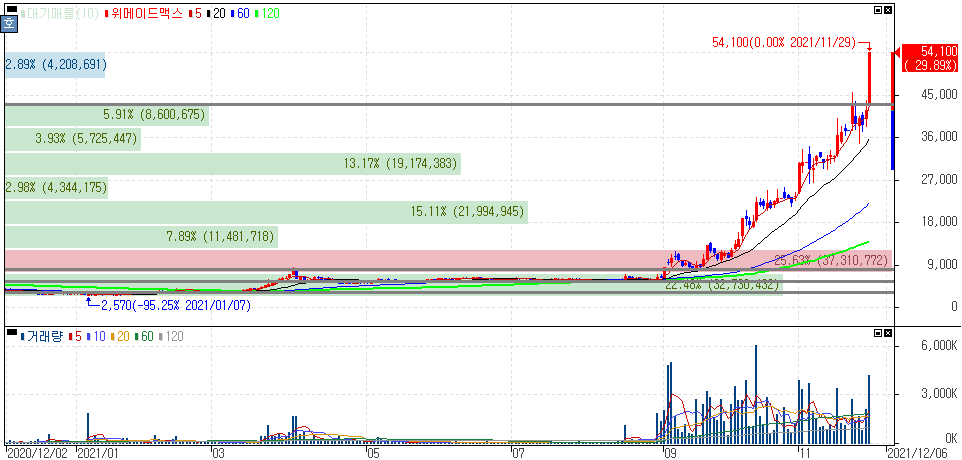 이와 관련 ㈜위메이드넥스트를 완전자회사로 편입하여 게임 개발 역량 강화 및 경영 효율성을 제고하고자 한다고 언급한 바 있습니다. 9월 이후 상당한 상승을 보이고 있는 종목 중 하나 입니다.