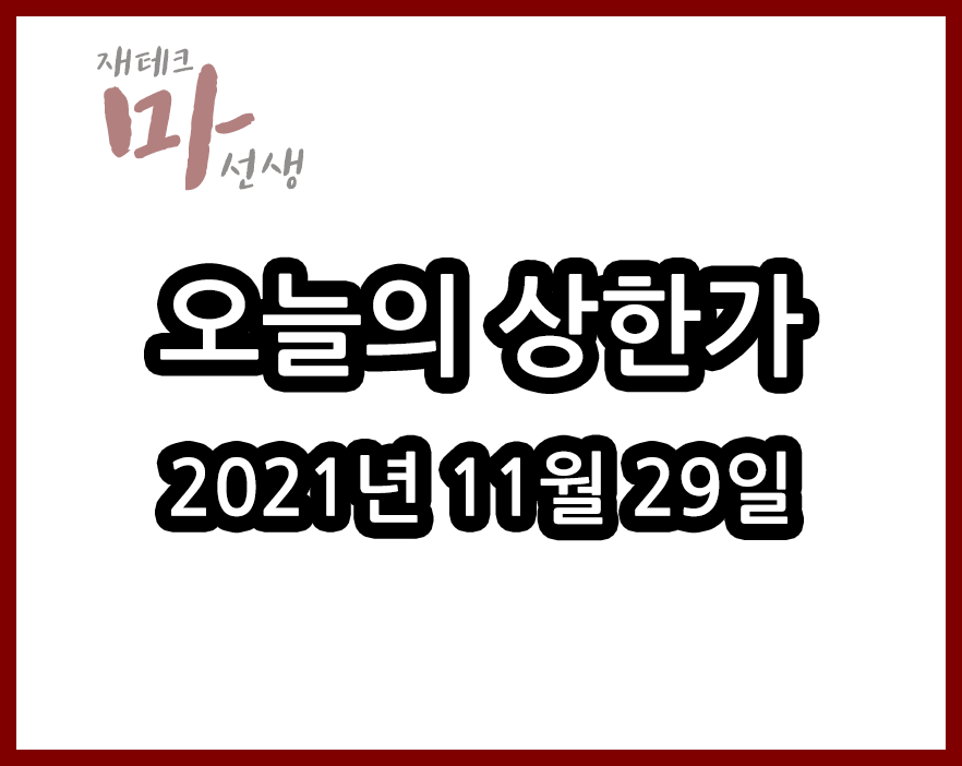 2021년 11월 29일 오늘의 상한가 종목 및 이유 :: 현대바이오 위메이드맥스 소마젠 제노코 셀레믹스 주가 외
