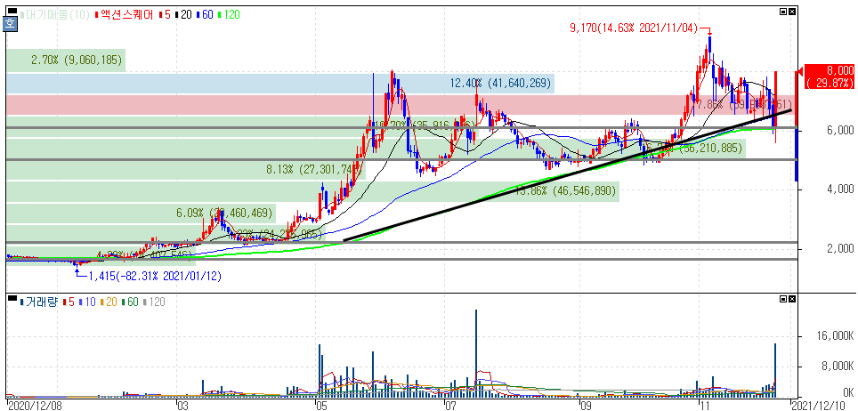 액션스퀘어 주가 :: 2021년 12월 3일 오늘의 상한가 종목