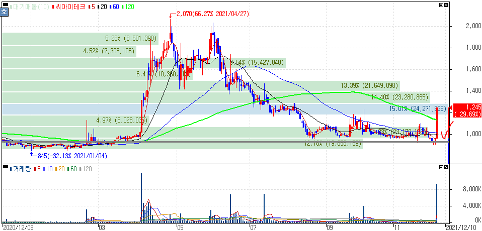씨아이테크 주가 :: 2021년 12월 3일 오늘의 상한가 종목
