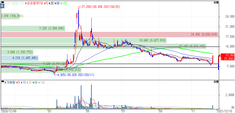 2021년 12월 3일 :: 오늘의 상한가 종목