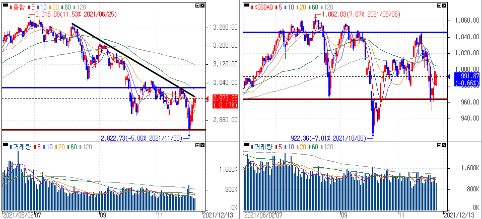 지난 뉴욕증시는 오미크론 우려 및 고용지표 부진 등으로 하락을 보였는데요. 다우 지수는 -0.17% 하락한 34,580.08에 마감하였고, 나스닥 지수는 -1.92% 하락한 15,085.47에 마감하였습니다.