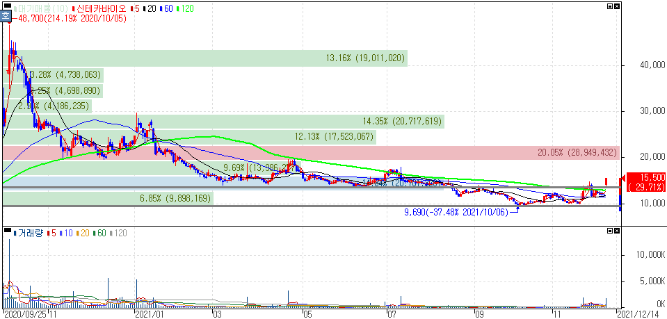 면역항암제 후보물질 "STB-C017", 동물 실험 효과 입증 소식에 상한가를 기록한 신테카바이오 주가 입니다.