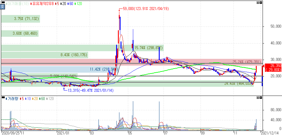 코로나19 위중증 환자 급증 속 유유테이진 인공호흡기 주목 받으면서 상한가를 기록한 유유제약2우B 주가 입니다.