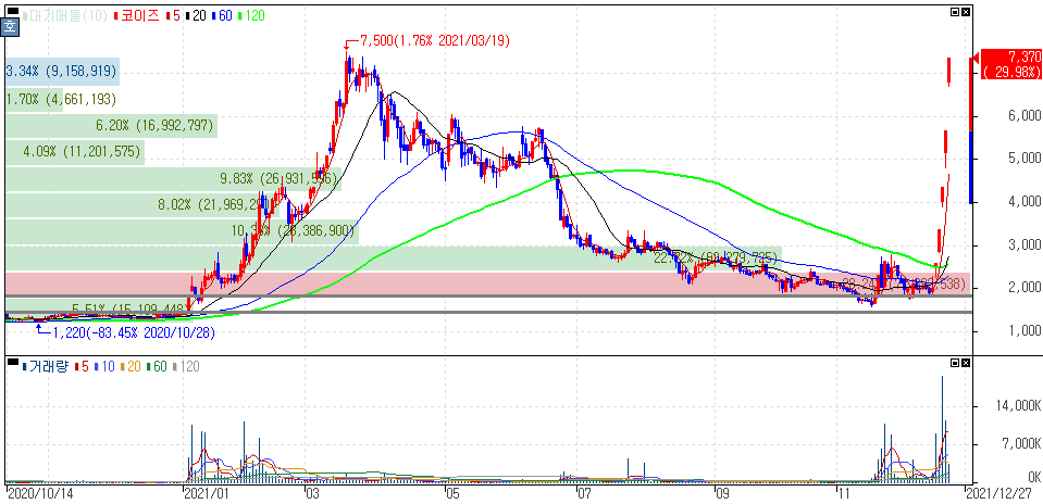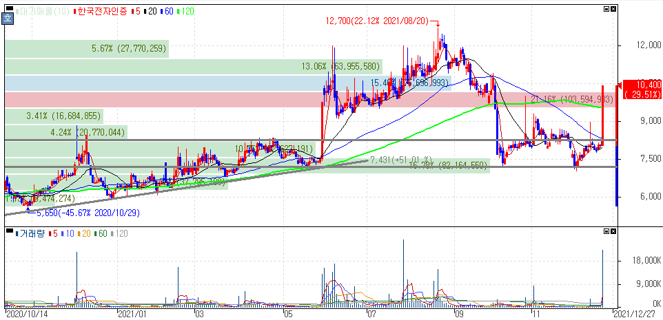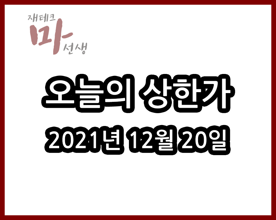 2021년 12월 20일 오늘의 상한가 종목 및 이유 :: 비케이탑스 에디슨EV 한국전자인증 에이루트 주가 외