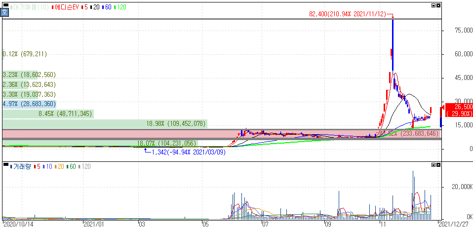 이러면서 쌍용차 인수 본 계약이 급물살을 타는 분위기에 에디슨모터스 컨소시엄에 참여하고 있는 에디슨EV가 상한가를 기록했습니다.