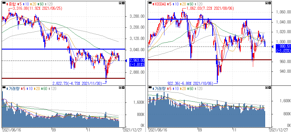 금일 코스피 지수는 -1.81% 하락한 2,964.00에 마감하였고, 코스닥 지수는 -1.07% 하락한 990.51에 마감하였습니다. 글로벌 코로나19 재확산이 여전한 상황 속 영국의 봉쇄조치 재개 가능성에 美 사회지출법안 통과 실패, 中 금리 인하 등이 하락의 주 요인으로 보여지고 있습니다.