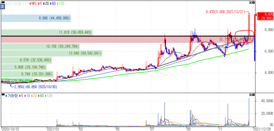 2021년 12월 21일 오늘의 상한가 종목 및 이유 :: NPC 아모센스 피에치씨 에스피시스템스 인터엠 주가 외
