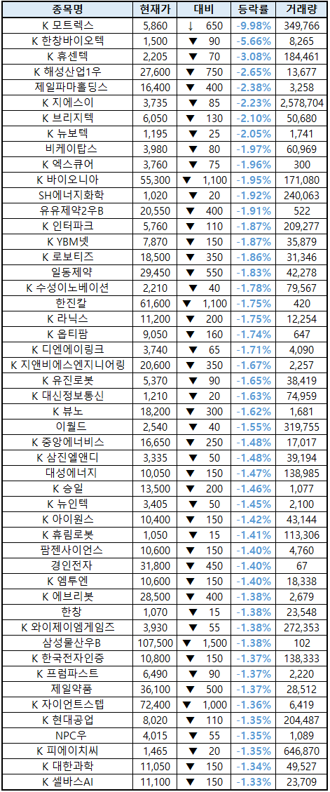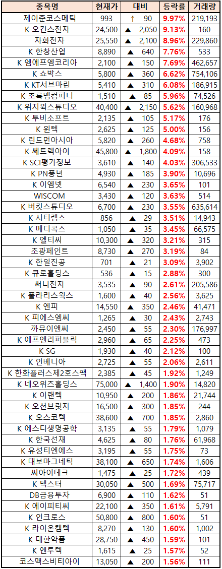 (종목명 앞에 'K'는 코스닥 종목을 의미합니다.)