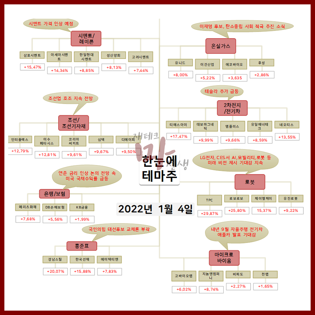 CES 2022 개막을 앞두고 LG전자·삼성전자·현대차 등 주요 기업 로봇 사업 기대감 지속으로 로봇 관련주로 부각