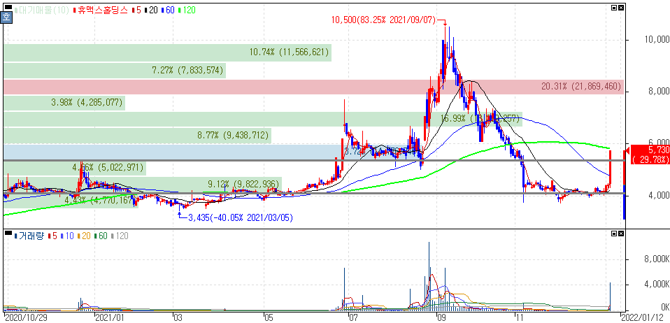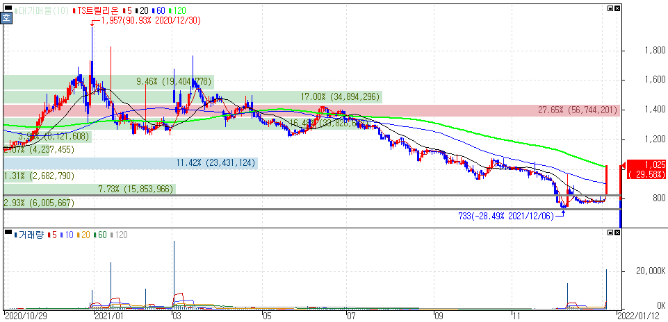 2022년 1월 5일 오늘의 상한가 종목 및 이유 :: 써니전자 까뮤이앤씨 유틸렉스 오픈베이스 TS트릴리온 휴맥스홀딩스 주가 외