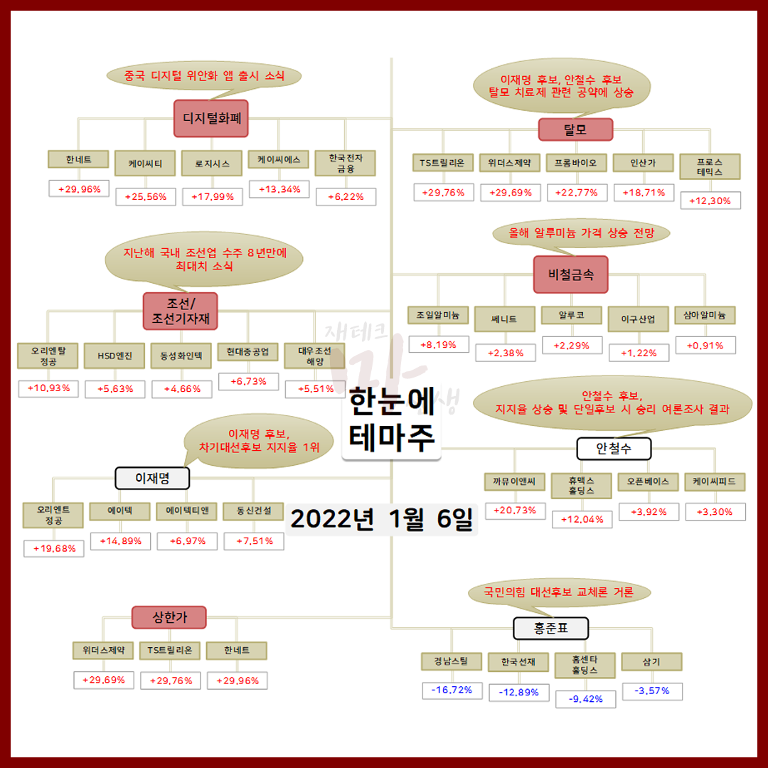 1월 6일 오늘의 상한가 종목 및 이유 :: 위더스제약 TS트릴리온 한네트 주가 외