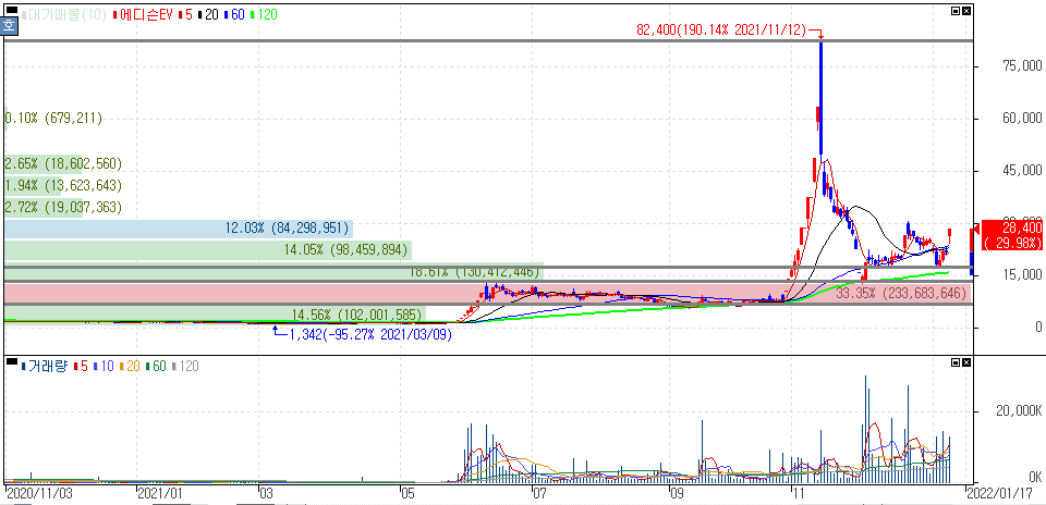 에디슨모터스, 쌍용차 본계약 체결 소식에 상한가를 기록한 에디슨EV 주가 입니다.